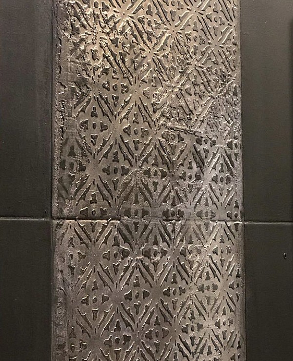 Трафарет прекрасно сочетается со многими геометрическими и восточными орнаментами из нашего ассортимента. Его можно наносить в бесконечно раппорте вертикально и горизонтально.