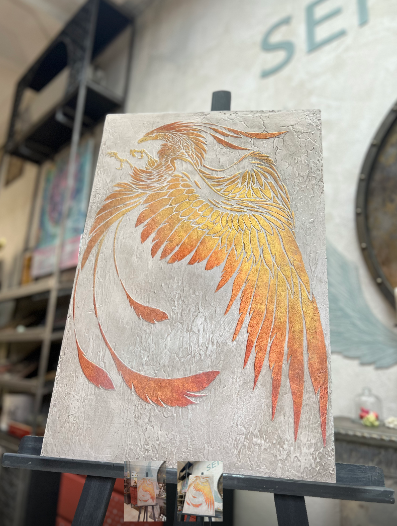 Многоразовый "Трафарет - Феникс" купить в Ярославль, Размер трафарета: 63.5х57, 87х78.